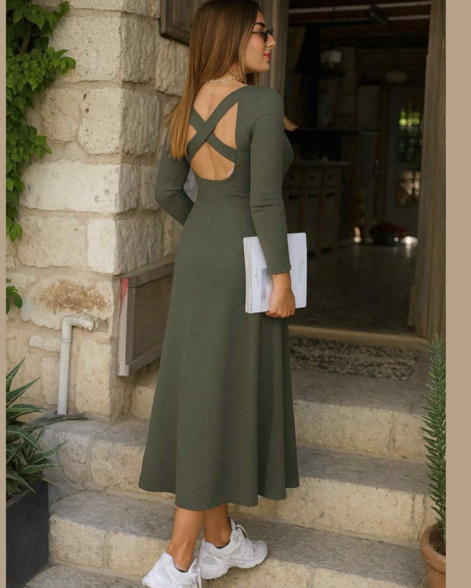 Open Back Cotton Long Wide Dress